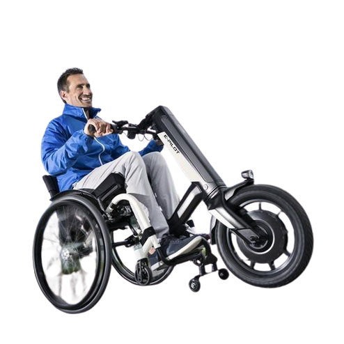 Eine perfekte Mischung aus sportlich-elegantem Design und perfekter Ergonomie: Der e-pilot von Alber überzeugt. Er macht Ihren Rollstuhl in Sekundenschnelle zu einem sportlichen Fahrzeug – die dynamische Kombination für den Alltag. Somit entfallen die lästige Parkplatzsuche und der mühsame Transfer ins Auto und heraus. Durch die kräftige Gabel, den im Rahmen integrierten Akku-Pack und das leistungsstarke Antriebsrad verbinden sich sportliches Design und ausgefeilte Ergonomie perfekt.